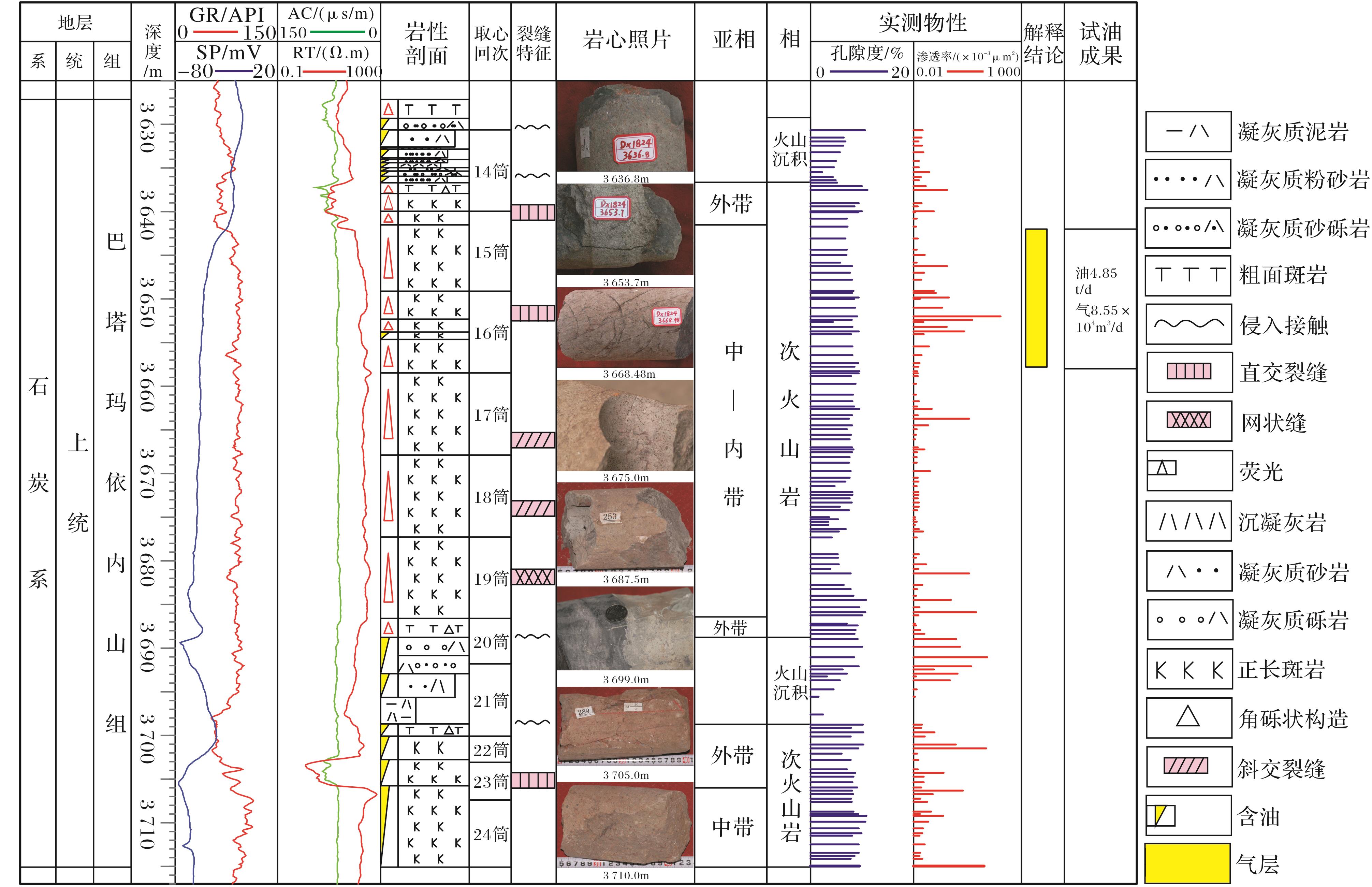 关键词: 克拉美丽气田 滴西18井区 石炭系 次火山岩储层 正长斑岩