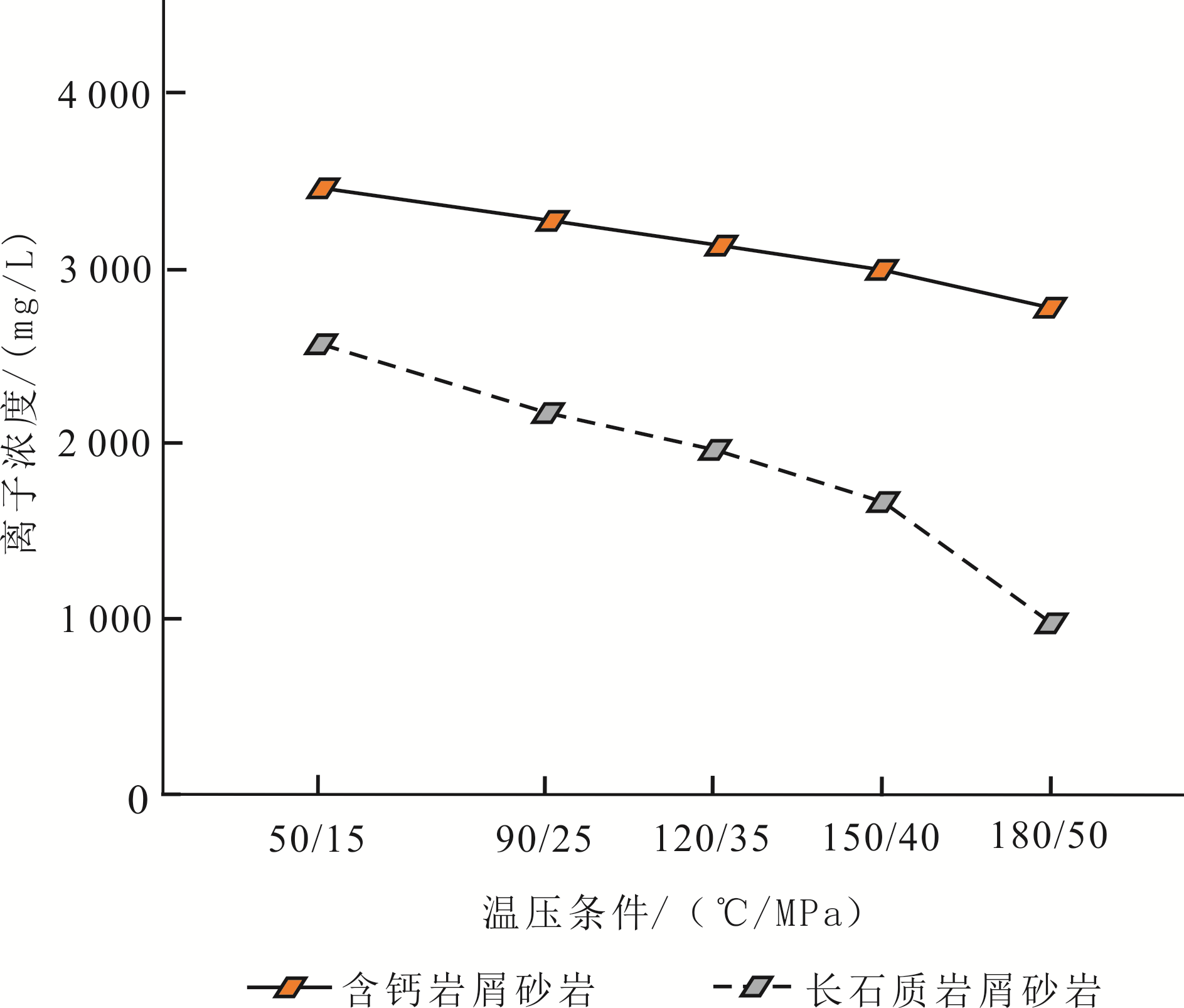| 图5 不同温度压力条件下反应液中的Ca2+含量 |