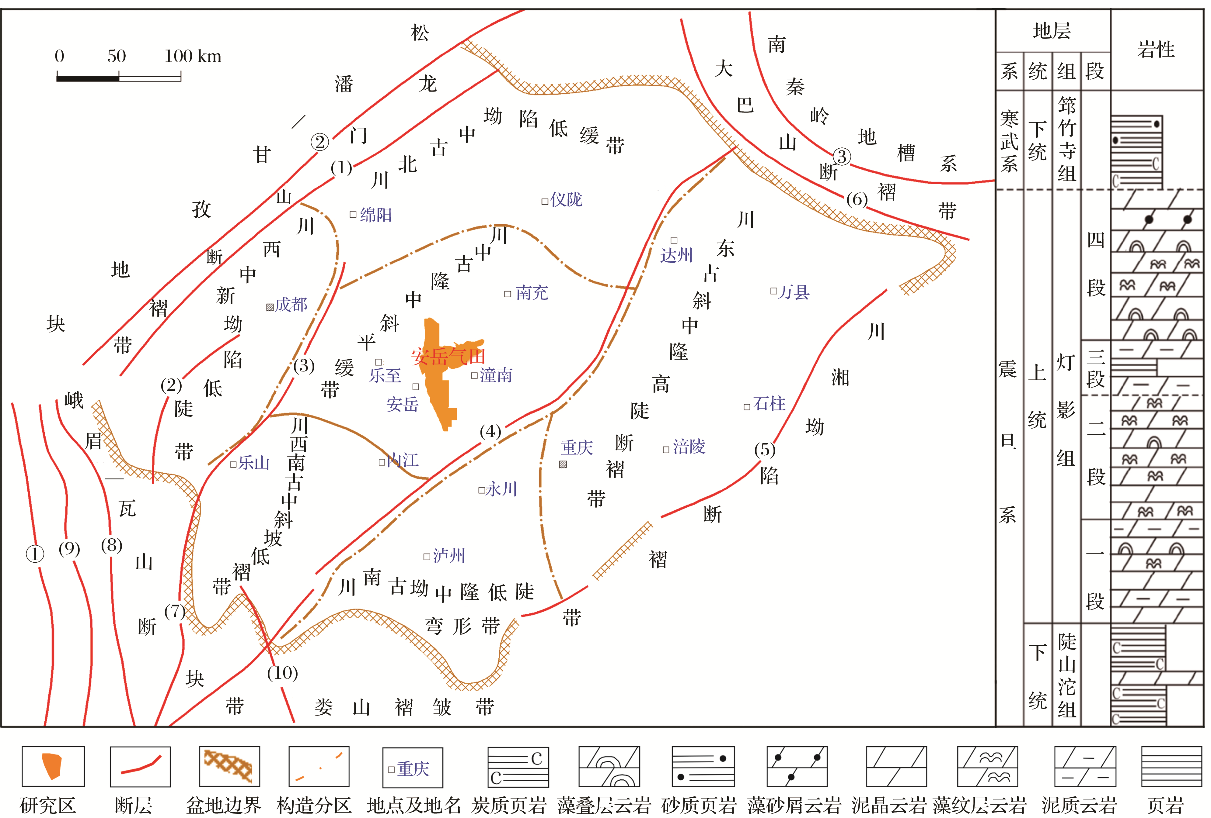 | 图1 四川盆地安岳气田磨溪—高石梯区块区域构造位置示意 |