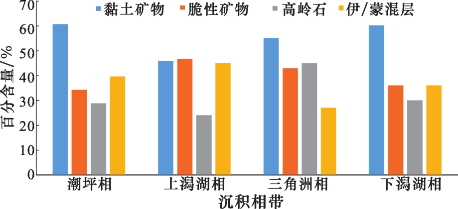 图3 不同沉积相带主要矿物成分分布柱状图 |